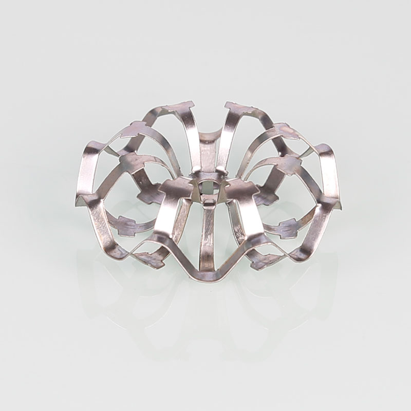泰勒花環(huán)填料是由美國Teller.A.j.1954年介紹的一種填料,國內(nèi)通稱泰勒花環(huán)。它是由許多圓環(huán)繞結(jié)而成,現(xiàn)已成為系列化產(chǎn)品,共有三個型號。這種填料的主要特點是填料的空隙率大,不易被堵塞,還有通量大、阻力小等優(yōu)點,由于這種填料的間隙處能有較高的滯液量,可使塔內(nèi)液體停留時間較長,從而增加了氣液的接觸時間,提高了優(yōu)質(zhì)效率。